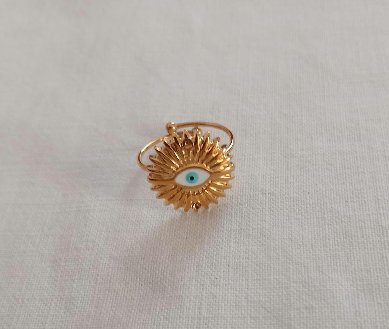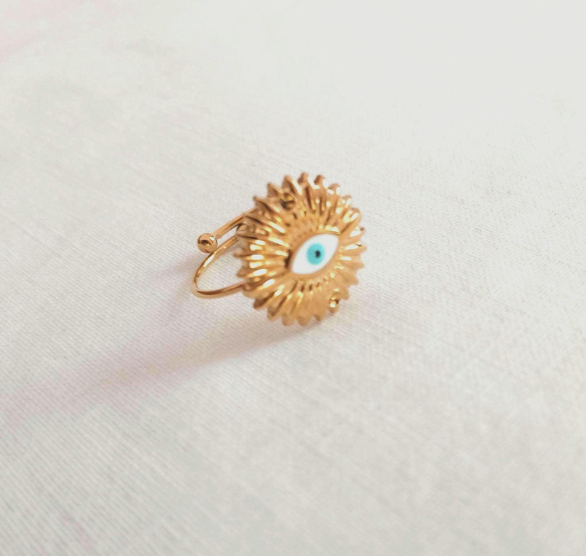 Sun evil eye ring made of high-quality double gold plated stainless steel materials. Minimal ring for special occasions. Ideal gift.