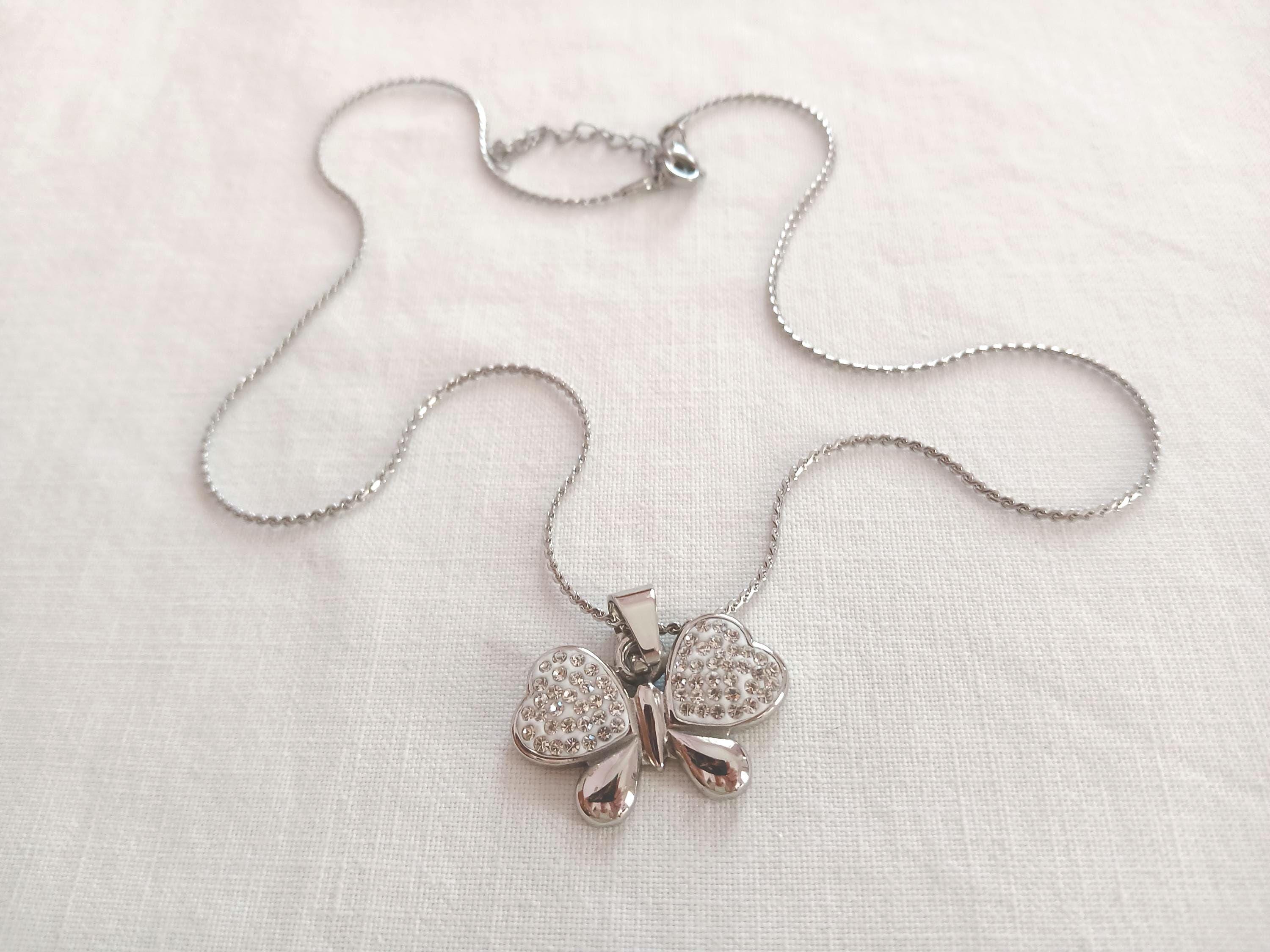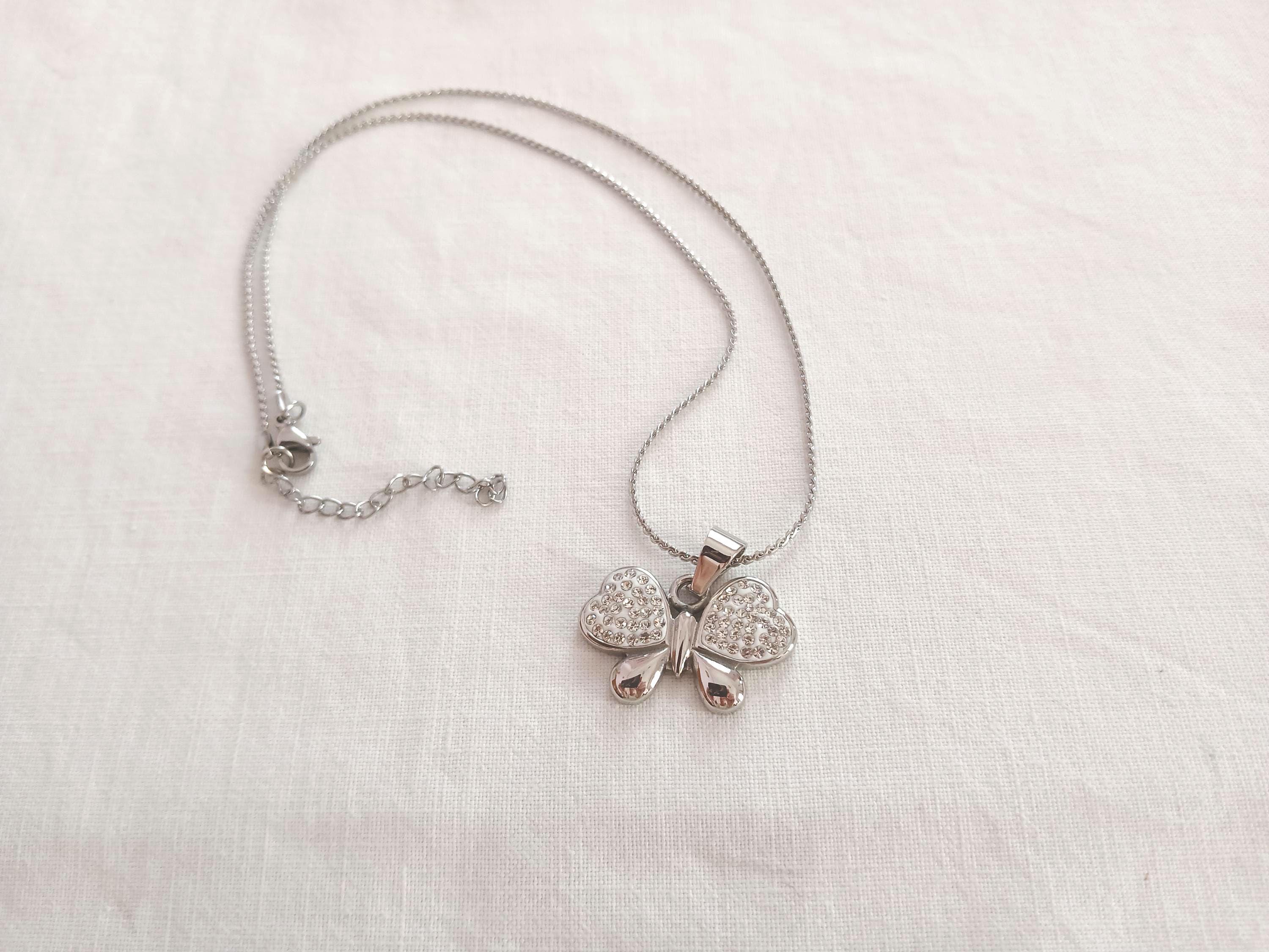 Stainless steel handmade necklace with butterfly pendant. Silver color chain and butterfly, for girls and women. Ideal for gift.